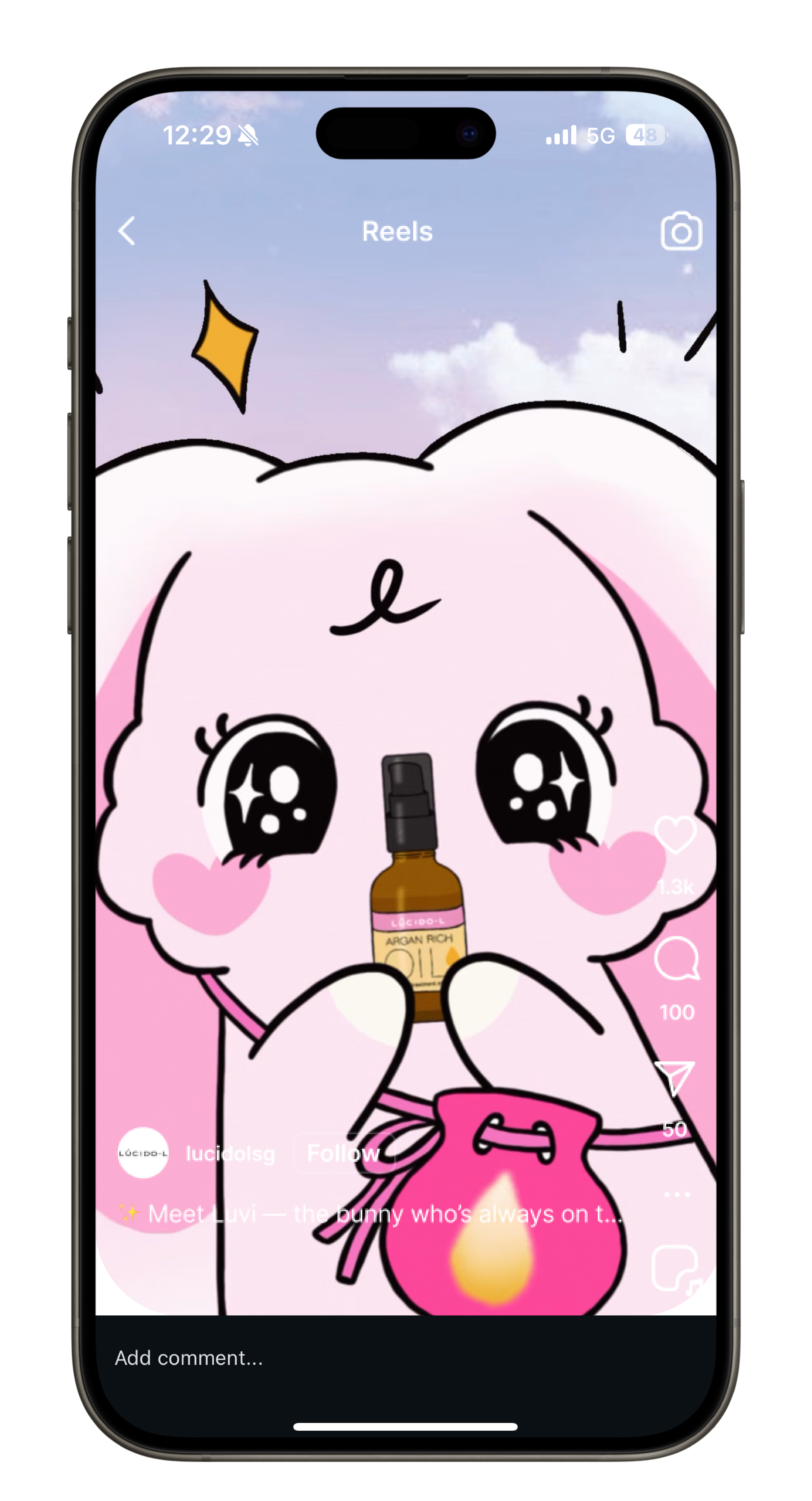 In addition to static visuals and GIFs, I created short-form animations for TikTok and Instagram Reels to expand Luvi’s presence on social platforms. These animations brought the mascot to life through playful storytelling, showcasing her fun-loving personality while subtly highlighting Lucido-L’s product benefits, such as radiant shine and beauty on the go. Designed to be engaging and shareable, the content encouraged interaction with younger audiences and aligned with the brand’s focus on approachable, everyday beauty.